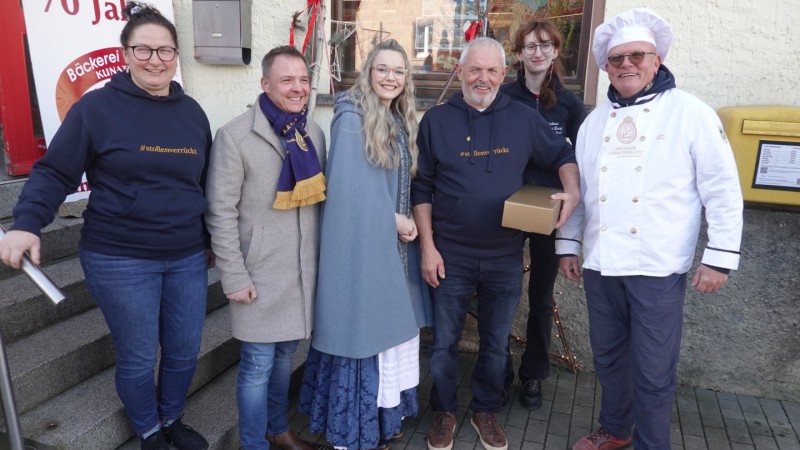 Zum 70-jährigen Bestehen der Bäckerei Kunath in Leppersdorf überbrachte eine kleine Delegation des Dorfclubs alle guten Wünsche und ein Präsent an Martin Kunath, selbst Mitglied des Dorfclubs, sowie an die Familienmitglieder und das gesamte Team der Bäckerei. Zuvor hatten die Kita-Kinder ein Ständchen vorgetragen. Auch Vertreter der Bäckerinnung, Berufskollegen und das Dresdner Stollenmädchen zollten ihren Kollegen in Leppersdorf ihren Respekt. Am Nachmittag setzte Ministerpräsident Kretschmer den Höhepunkt der Gratulationscour.